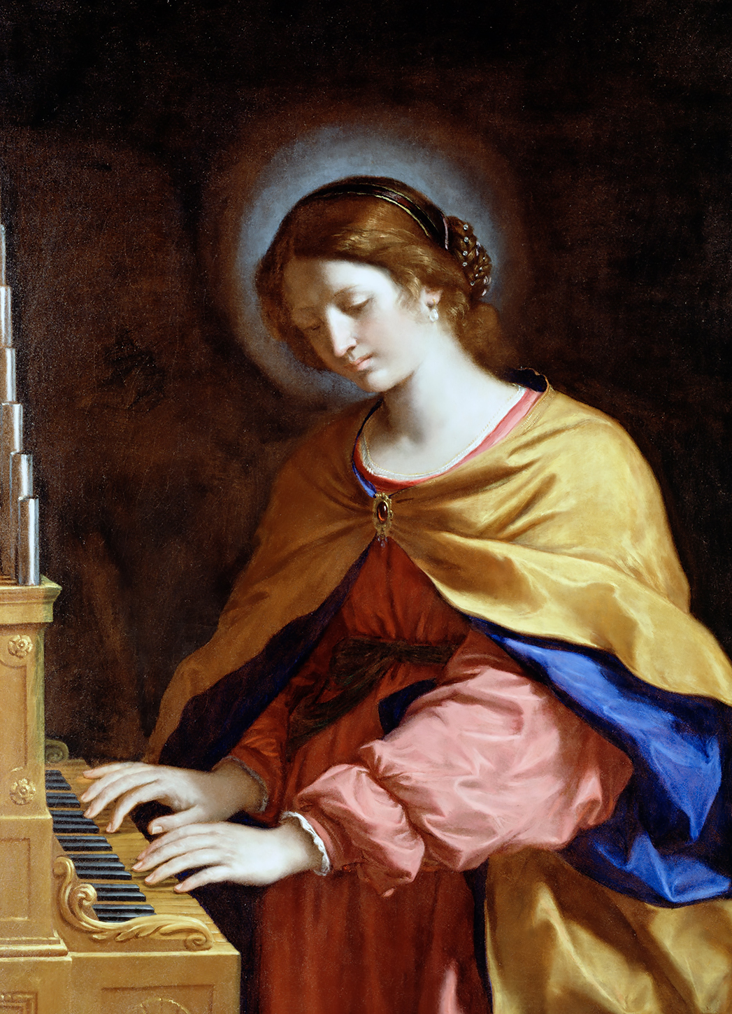 • 중세 이후 전례와 예술 안에서 교회 음악과 성가의 수호성녀로 공경이 확립됨