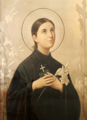 • 그녀의 상징인 십자가와 백합은 고통과 순결이 결합된 신앙의 길을 상징적으로 보여준다.