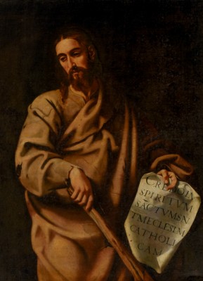 ※ 이 작품은 루벤스 화파 특유의 풍부한 색조와 강한 명암 대비를 통해 인물의 육체성과 존재감을 강조한다. 작가는 배경을 최소화하고 빛을 얼굴과 손에 집중시켜, 사도의 표정과 상징에 시선을 고정한다. 곤봉은 순교의 정체성을 간결하게 드러내며, 기울어진 자세는 인물의 내면적 고독을 시각화한다. 이 성화에서 신앙은 장식적 장엄함이 아니라, 세월과 고난을 통과한 뒤 남는 인간적 진지함과 책임의 태도로 제시된다.