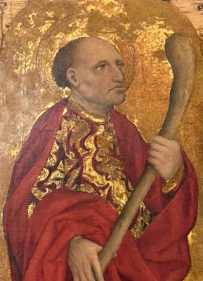 • 손에 든 목제 곤봉은 순교의 상징을 명확히 제시한다.