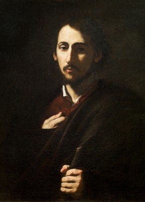 ※ 이 작품은 17세기 로마 바로크의 전형적인 명암 대비와 강렬한 색채를 통해 인물의 내적 긴장을 시각화한다. 작가는 붉은 망토의 대각선 흐름과 어둠 속에서 떠오르는 얼굴을 대비시켜, 극적이면서도 집중된 인물상을 구축한다. 곤봉은 단순한 상징을 넘어 화면의 구조를 지탱하는 축으로 작용하며, 순교의 정체성을 분명히 한다. 이 성화에서 신앙은 격정적 표출이 아니라, 고난을 통과한 뒤 남는 굳은 결단과 책임의 무게로 제시되며, 빛은 그 결단이 하느님을 향해 정렬되어 있음을 암시한다.
