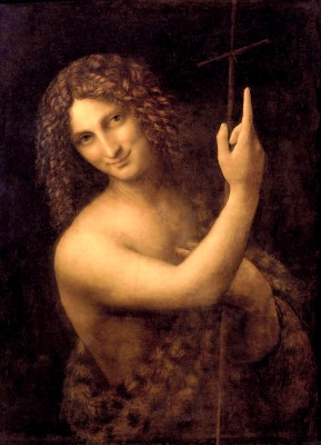 ※ 이 작품은 르네상스 후기 회화가 탐구한 인간 내면의 신비와 영적 상징을 집중적으로 드러낸 사례로, 레오나르도 다 빈치는 극적인 사건을 묘사하기보다 어둠 속에서 떠오르는 인물의 얼굴과 손짓을 통해 관람자의 시선을 하나의 의미로 모으는 구성을 선택하였다. 작가는 부드러운 스푸마토와 유연하게 비틀린 신체를 통해 세례자 요한을 광야의 엄격한 설교자가 아니라 신비로운 예언자로 표현하고자 했으며, 위를 가리키는 손짓은 그의 사명이 자신을 향하지 않고 하느님과 다가올 메시아를 향하고 있음을 상징한다. 이 성화에서 신앙은 외적인 사건보다 보이지 않는 하느님을 가리키는 조용한 가리킴의 태도로 제시되며, 요한의 미소와 손짓은 인간의 시선을 자신이 아닌 더 높은 곳으로 이끄는 증언자의 역할을 묵상하게 한다.