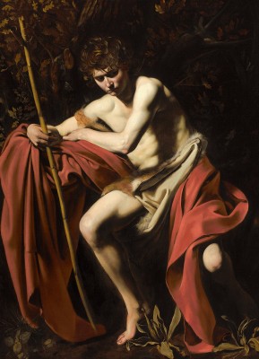 ※ 이 작품은 바로크 초기 회화에서 나타나는 강렬한 명암 대비와 현실적 인체 묘사를 통해 성인을 인간적 존재로 끌어내린 카라바조의 특징을 보여준다. 작가는 성 요한을 전통적인 상징적 예언자의 모습이 아니라 숲속에 홀로 앉아 사색에 잠긴 젊은 인물로 표현함으로써, 그의 삶이 광야의 설교 이전에 깊은 내적 준비와 고독의 시간 속에서 형성되었음을 드러내고자 했다. 이 성화에서 신앙은 영웅적 사건이나 극적인 선포보다 침묵 속에서 자신을 성찰하는 인간의 내면에서 시작되는 것으로 제시되며, 어둠 속에서 떠오르는 몸과 붉은 천은 인간의 연약함 속에서도 하느님의 부르심이 조용히 드러날 수 있음을 묵상하게 한다.