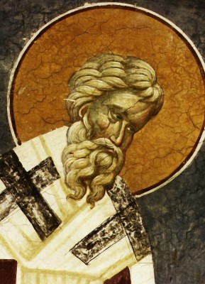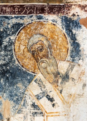 작가 : 작가 미상(Anonymous) 연대 : 1225년 소장 : 아기아 안나 교회, 아마리(크레타) 기법·시대 : 프레스코, 중기 비잔틴 유형 : 성인 단독상(주교 초상) 특징 : • 상반신 중심의 구도에서 인물이 약간 반측면으로 고개를 기울이고 있다. • 단순화된 얼굴 윤곽과 깊게 파인 눈매가 금욕적이고 사색적인 분위기를 만든다. • 절제된 색채와 마모된 표면이 지역 교회 프레스코의 소박한 신심 전통을 보여준다. • 오모포리온에 새겨진 십자가 문양이 주교로서의 사목적 권위와 교회적 정체성을 드러낸다. • 정적인 자세와 단순한 배경이 인물의 영적 집중을 강조한다. ※ 이 작품은 중기 비잔틴 프레스코 전통 속에서 성인을 현실적 인물보다 교회의 영적 교사로 제시하는 성화 형식을 따른다. 작가 미상의 화가는 단순한 색면과 절제된 인물 묘사를 통해 장식적 화려함을 배제하고, 반측면으로 기울어진 자세와 깊은 눈매를 통해 성 안드레아스의 회개와 묵상의 영성을 강조한다. 이 성화에서 신앙은 외적인 사건의 서사가 아니라 내면의 성찰과 참회의 삶으로 드러나며, 성 안드레아스의 모습은 교회 전통 안에서 신자들을 회개와 자비의 길로 이끄는 영적 교사의 역할을 조용히 상기시킨다.