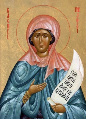 ※ 본 작품은 이콘 전통의 정면성과 상징적 언어를 통해 라헬을 역사적 서사의 주변 인물이 아니라 하느님께 기억되는 의로운 존재로 규정하는 성화에 해당한다. 제작자는 금박 배경과 정면 구도를 사용해 사건의 흐름을 제거하고, 가슴에 얹은 손과 두루마리를 중심 시각 요소로 삼아 라헬의 정체성을 말보다 호소로 드러낸다. 이는 구약의 라헬이 삶에서 응답을 충분히 얻지 못했음에도 하느님 앞에서 잊히지 않는 인물로 전승되는 신앙적 이해와 연결되며, 그녀의 신앙이 행위의 성취가 아니라 기억을 향한 기다림으로 지속됨을 시각적으로 고정한다.