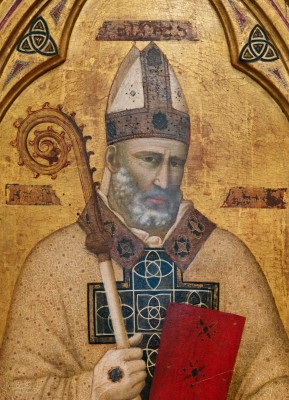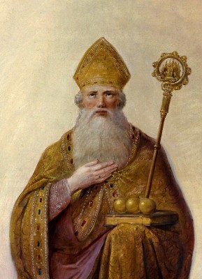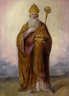 상징 : 세 개의 금공(은밀한 자선), 주교관(사목적 권위), 복음서(가르침과 전승)