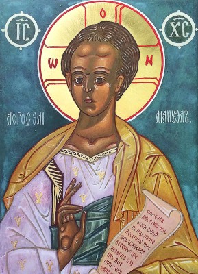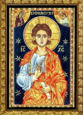 작가 : 미상(이콘 화가) 연대 : 현대(20–21세기) 소장 : 개인 소장(전승) 기법·시대 : 템페라 및 금박, 비잔틴 이콘 전통 유형 : 성상 이콘(흉상) 특징 : • 어린 모습의 그리스도는 성숙한 얼굴이 아닌 젊은 형상으로 표현되어 ‘임마누엘’의 의미를 강조한다. • 십자가 두광과 “IC XC” 표기는 그리스도의 신성과 정체성을 명확히 드러낸다. • 오른손의 축복 제스처와 왼손의 두루마리는 말씀과 권위의 상징으로 제시된다. • 단순화된 선과 평면적 색면은 감정보다 상징과 의미 전달에 집중한다. ※ 이 작품은 20–21세기 현대에 제작되었으나, 비잔틴 이콘 전통의 형식을 지속적으로 계승하는 시기의 특징을 반영한다. 작가는 어린 그리스도의 형상을 선택하면서도 전통적 도상과 상징 체계를 유지함으로써, 시간 속에 드러난 인간성과 영원한 신성이 분리되지 않음을 드러내고자 하였다. 이러한 표현은 신앙을 과거의 사건에 머무는 것이 아니라, 현재 안에서 계속해서 현존하는 말씀과의 관계로 이해하도록 이끈다.